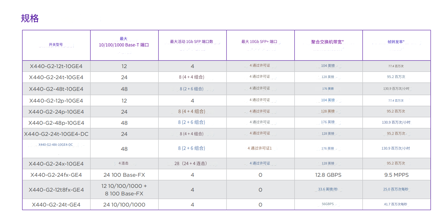 • 48 端口交换机型号支持 10GbE LRM