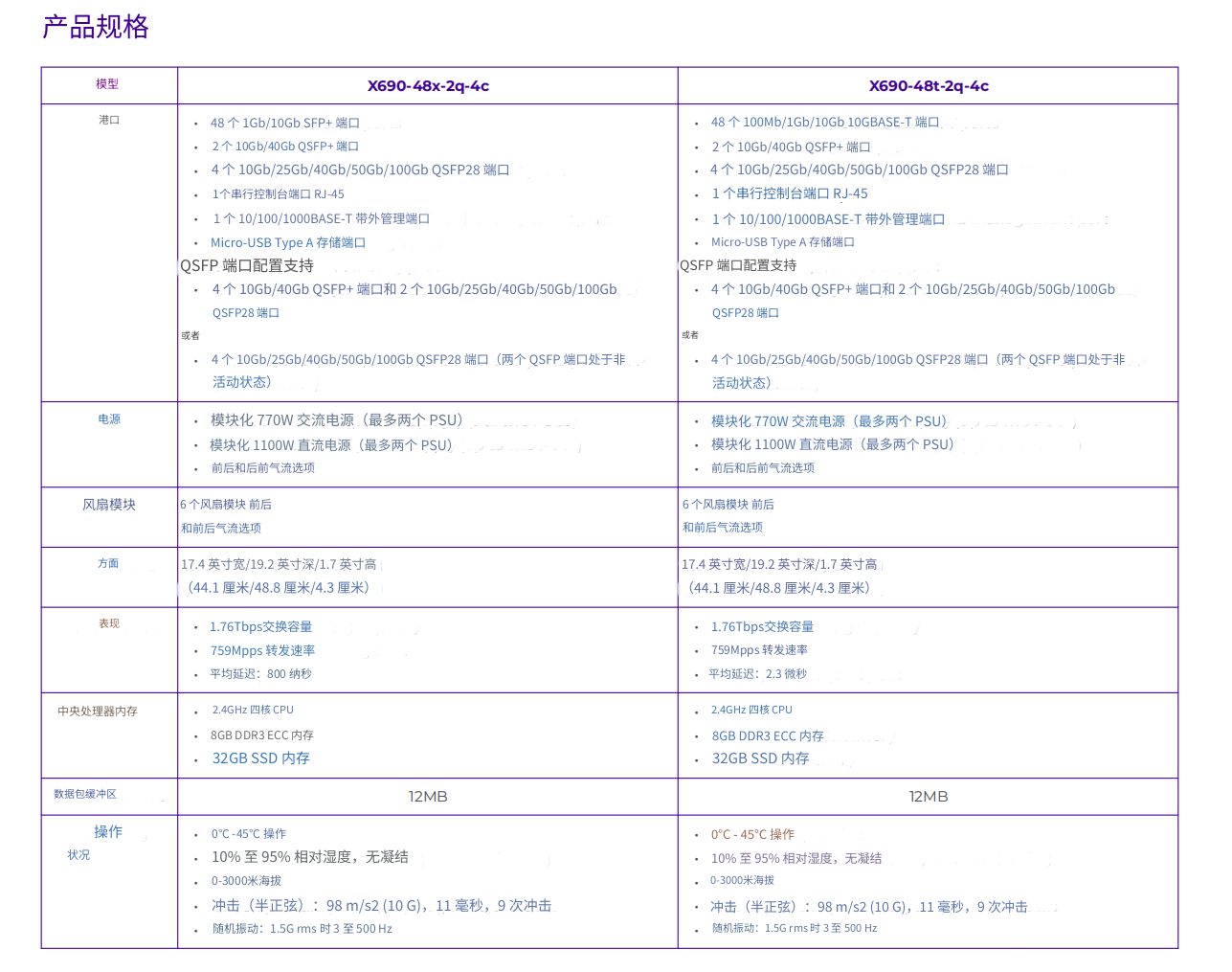 • 端口速度范围广泛,包括 1Gb、10Gb、25Gb、40Gb、50Gb 和 100Gb